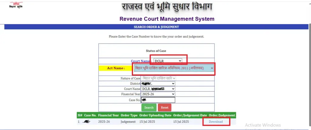 - उसके बाद “Case No” दर्ज कर “Search” बटन पर क्लिक करें |